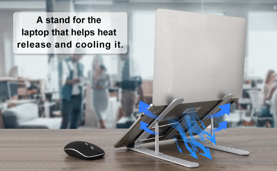 - 【Cooling Your Laptop】Since the adjustable laptop stand lifts up your laptop to some degrees so there is more space to release the heat in case of overheating. Compares with the laptop without a stand, the heat generated by your notebook can be dissipated quickly by the laptop stand.