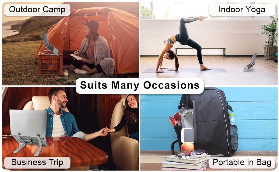 The traditional laptop stand limited you use it only in the office, big size and not easy to carry out, while our laptop stand is foldable, portable, adjustable and more stable, you can take it out anywhere to work as long as there with a desk or table. meanwhile, the size and weight of the laptop stand are far less than the traditional. This aluminum computer stands is especially suitable for mobile users who both work in the office and outdoors.