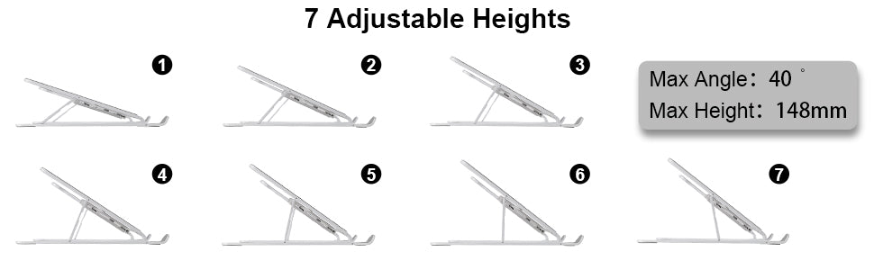 - 【7 Heights Adjustable】Our height adjustable laptop stands offer 7 levels of height and angle to help you make a proper adjustment between you and the laptop from 3.5-6 inches in your different needs. Perfectly suits for use at home or out of the offices.