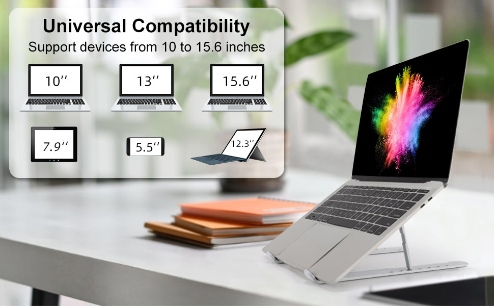 No need to worry about our laptop riser cannot fit very well on your devices since it supports the size from 10 to 15.6 inches but never limited to it, small size or oversize also applicable to use. the series devices like the Macbook Pro, Macbook Air, iPad, Surface Pro, Android Tablets, or other brands of notebooks will be perfect to use.