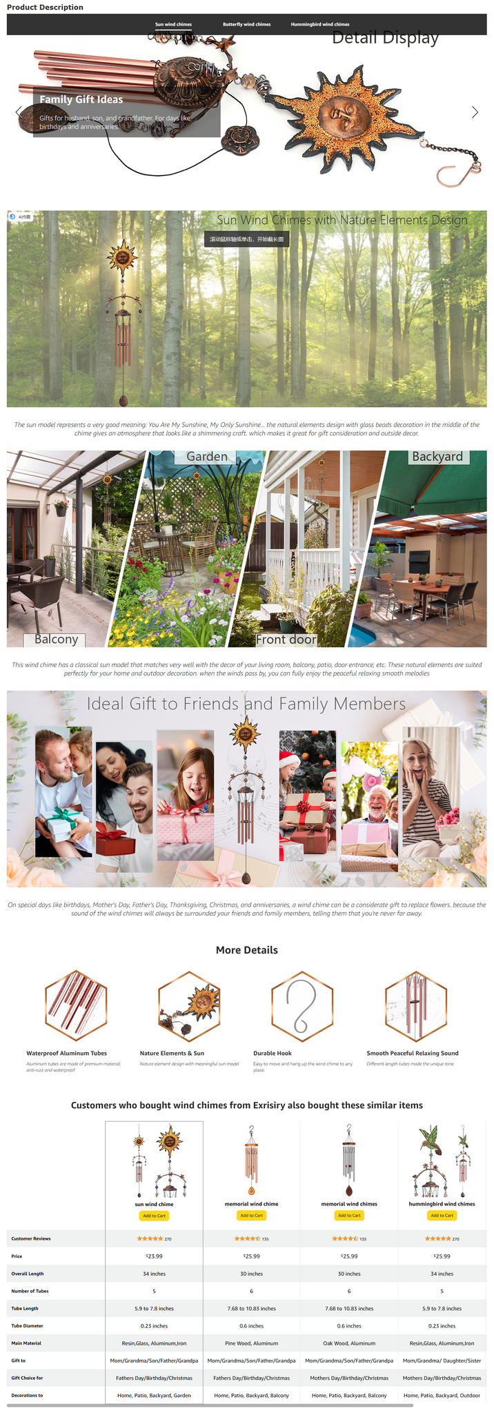 - ♬Adds a Relaxing Atmosphere♬: The tubes of the sun wind chime are made of premium waterproof and rustproof aluminum material, making it perfect for outdoor use. Each tube has a unique tone, thanks to its different lengths, which create a natural and peaceful melody when the wind blows. This makes it a perfect tool for relaxing after a long day.